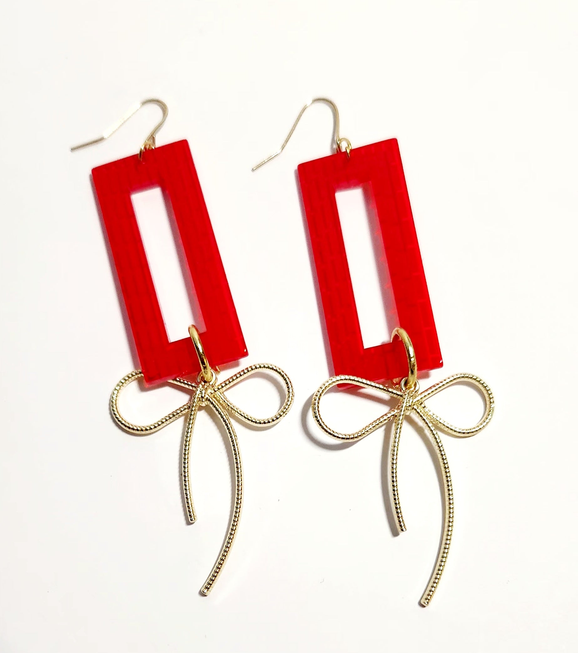Red charm with gold bow dangle