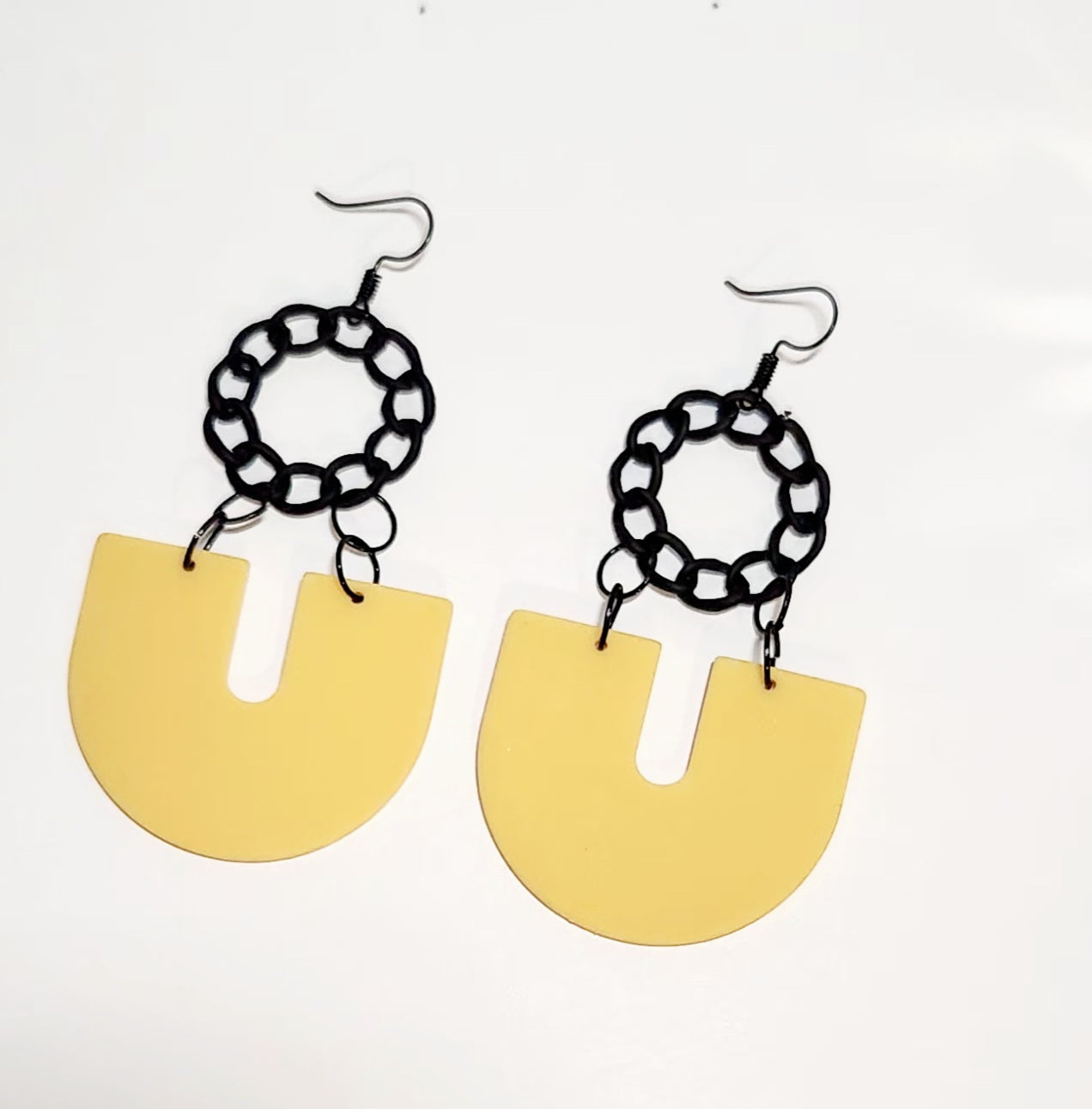 Yellow geo shaped charm with black link pendant