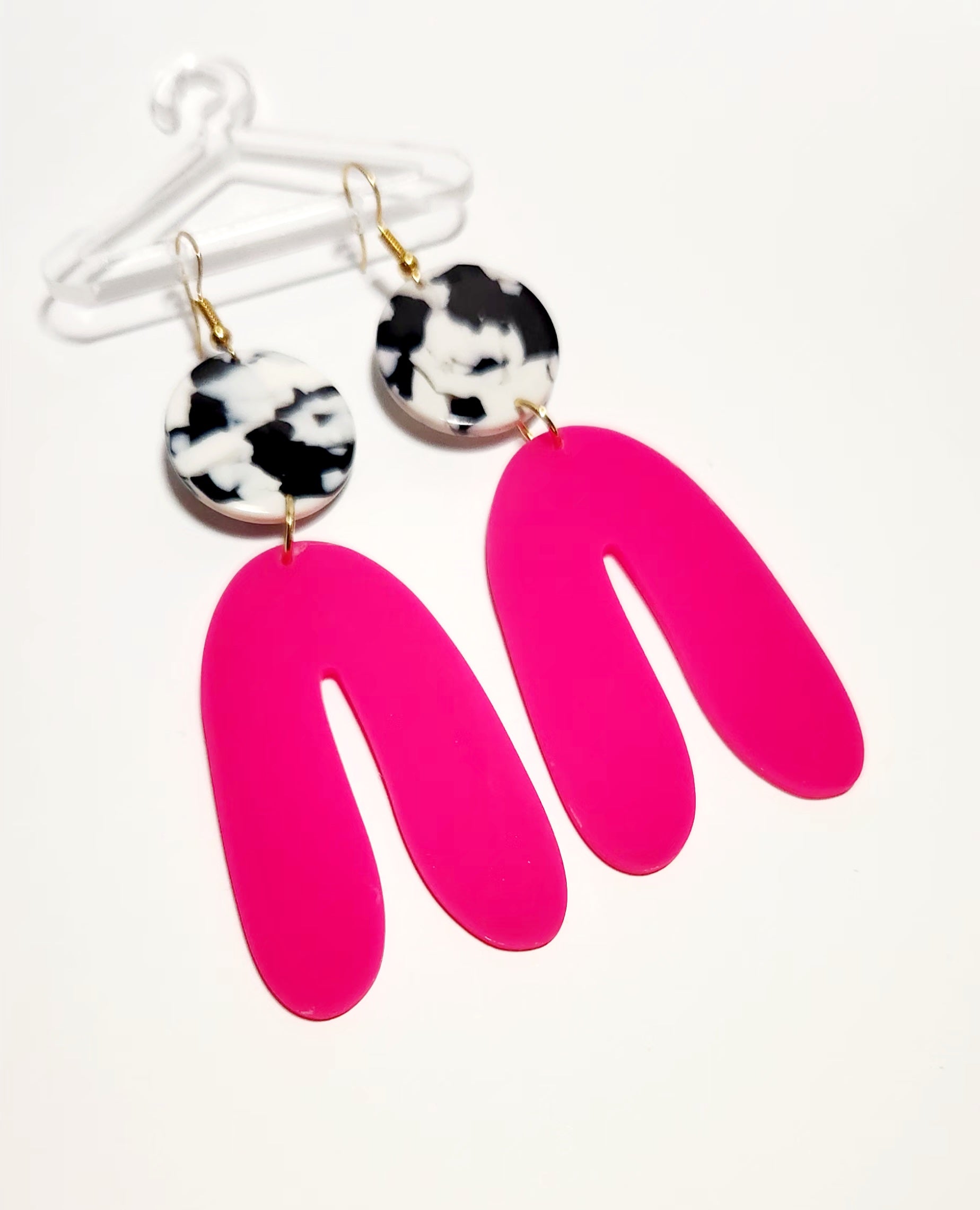 Pink geo charm with round print pendant