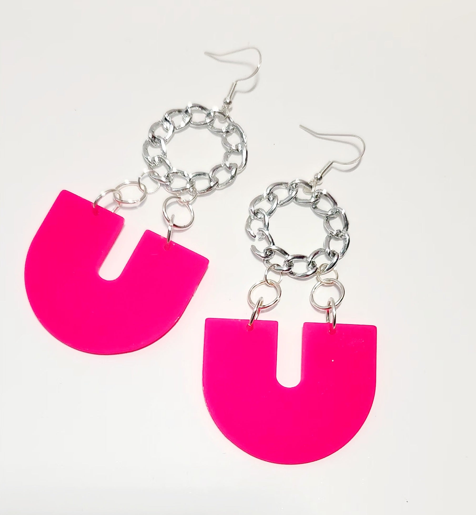 Pink geo shaped pendant with silver chain round charm