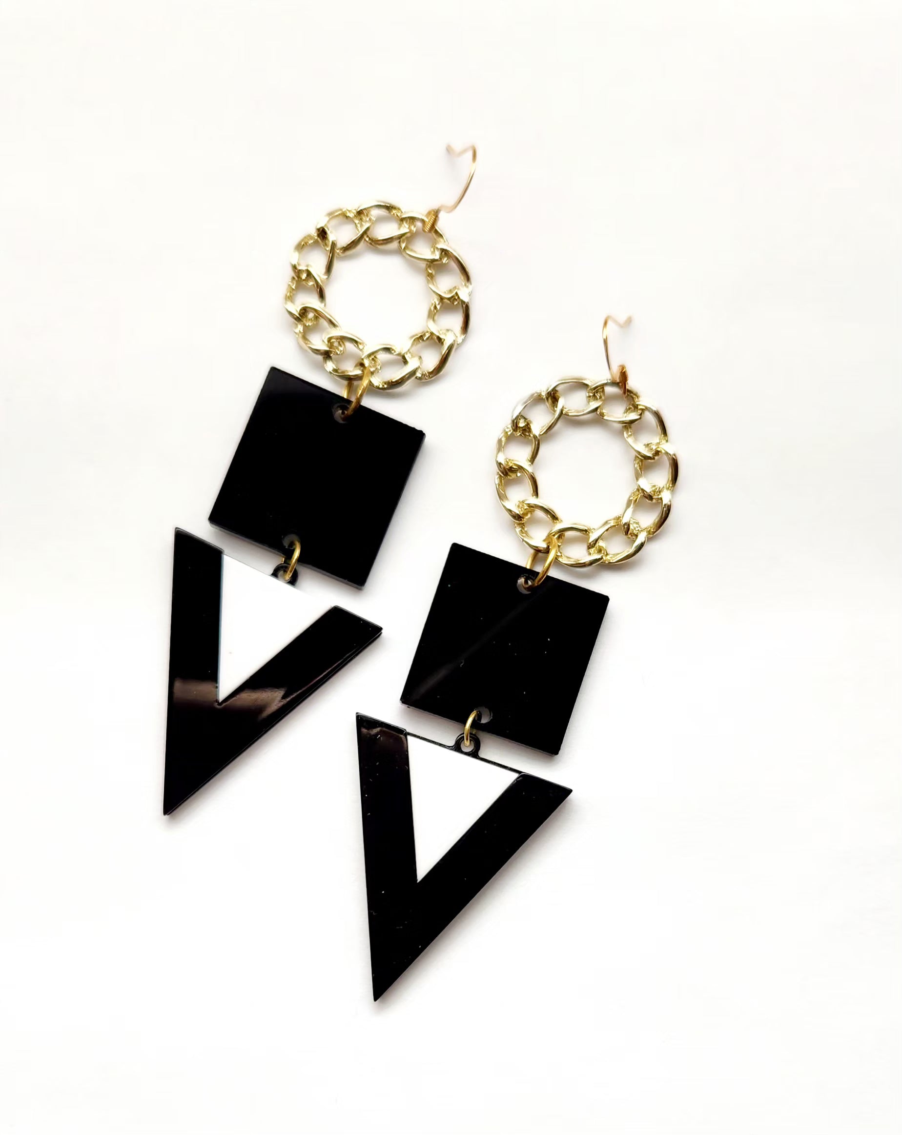 Black and white triangle with round gold charmearrings